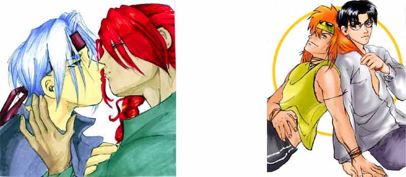 This is the complete version of an article printed in the Boston-based gay magazine, The Guide, November, 2003. Japanese names are given with the family name last. A list of sources accompanies this article, together with a sidebar (below) on the illustrator Kashō Takabatake. And check out the online yaoi survey by Portland State University Professor Antonia Levi.Yaoi: Redrawing Male LoveSome of today's edgiest male homosexual images and stories are being composed by women and girls-- for their own pleasure. Because it's (mostly) young women who've thronged to the burgeoning yaoi underground. What's yaoi? It's homegrown fan fiction based on Japanese cartoon characters. But it's not just Made-in-Japan anymore. Mark McHarry looks at the growing world of yaoi-- and Japan's centuries-old tradition of same-sex love that nourishes its roots. Around the world, millions of girls are conjuring tales of boys in love with each other. What's up with sex and gender in the 21st century?