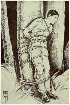 The titles of Kashō's works shown here may be those of the serialized boys' novels they illustrate. Regarding them, Matt Thorn comments, "No one seems to have raised a fuss about the boys' equivalent [to the Relationship of S], perhaps because boys could carry on reasonably discreet relationships without much restriction.... No one at the time would have identified this literature or illustration as 'homosexual'." (7)